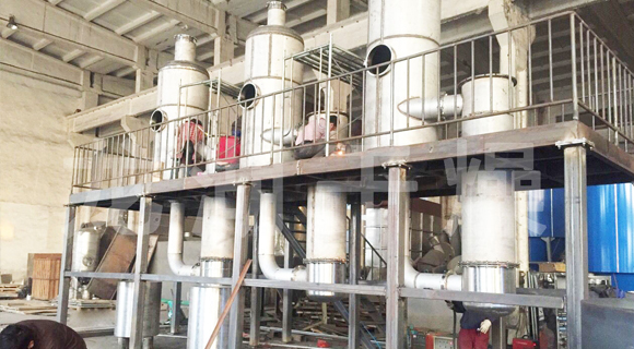 單效或多效降膜蒸發器,適用于牛奶、葡萄糖、淀粉、木糖、制藥、化工、生物工程、環保工程、廢液回收等行業進行低溫連續式蒸發濃縮,具有傳熱效率高,物料受熱時間短等主要特點,所以特別適用于熱敏性、粘滯性、發泡性等物料。
